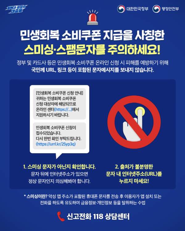 민생회복 소비쿠폰 지급을 사칭한 스팸문자들이 쏟아지고있다고 합니다.!!