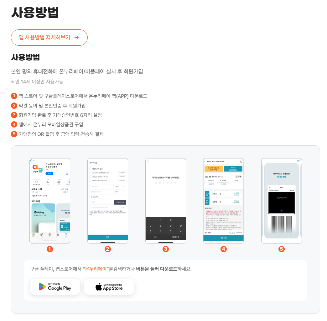 기존 신용카드나 체크카드를 온누리상품권 앱에 등록하고 충전하여 사용할 수 있는 방식입니다.