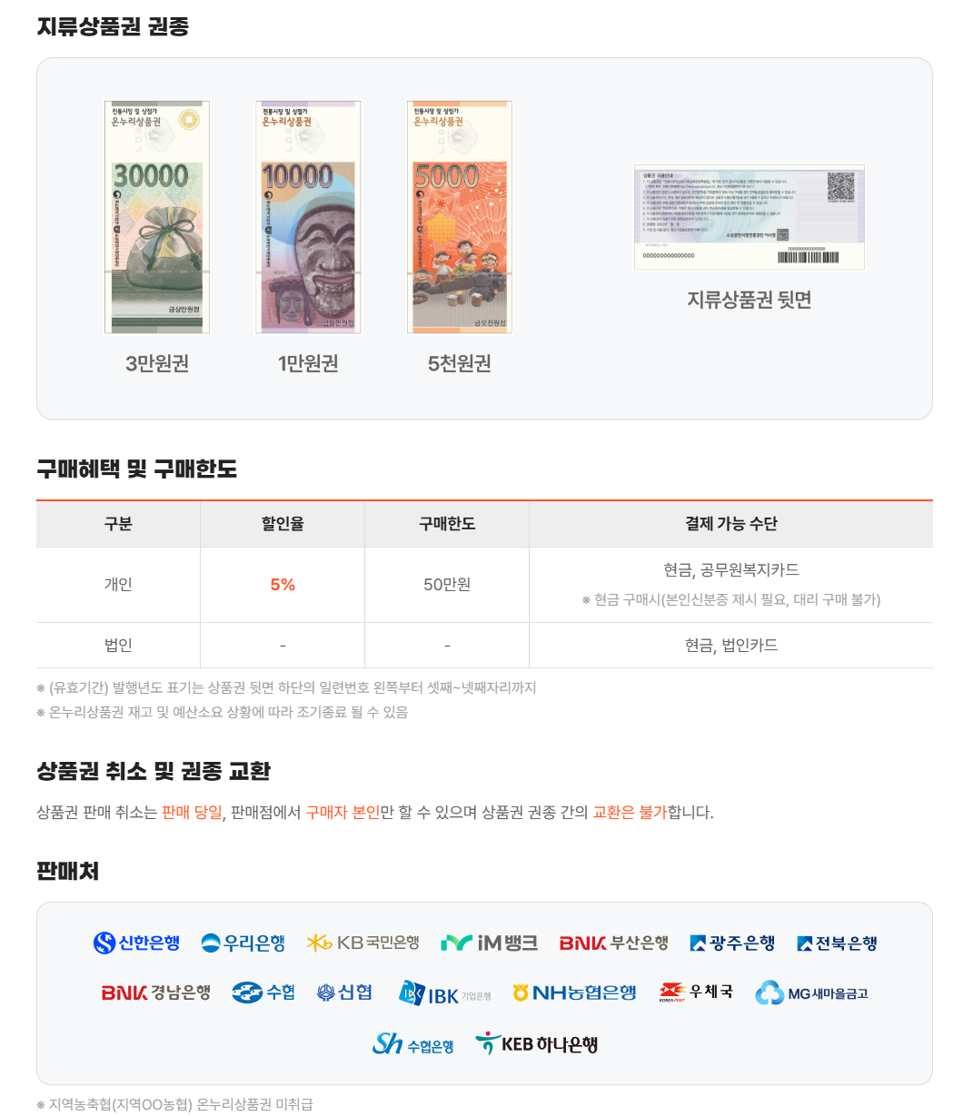 온누리상품권 종류와 사용 방법