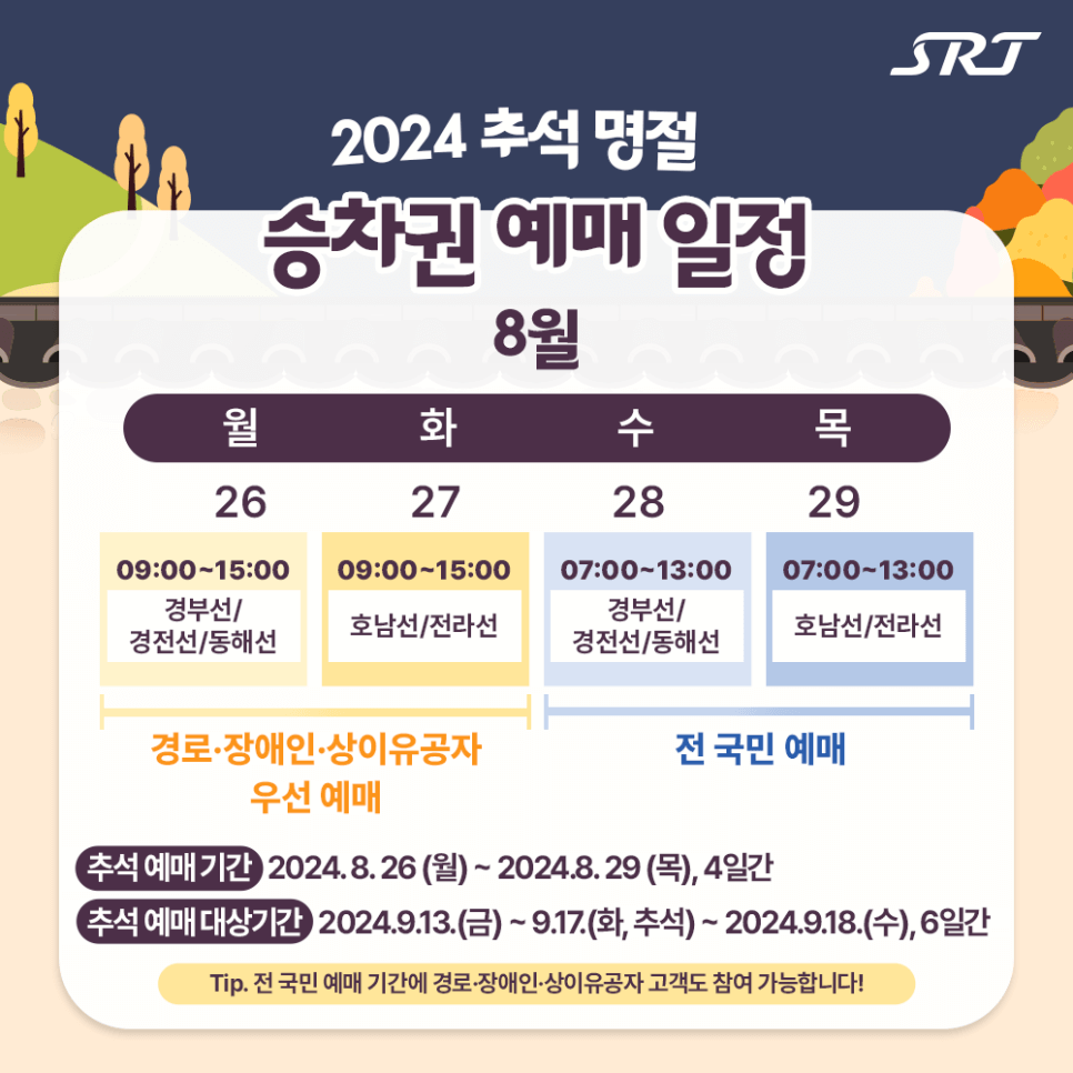 ✅ SRT 예매일정 : 2024년 8월 26일(월) ~29일(목) , 4일간
