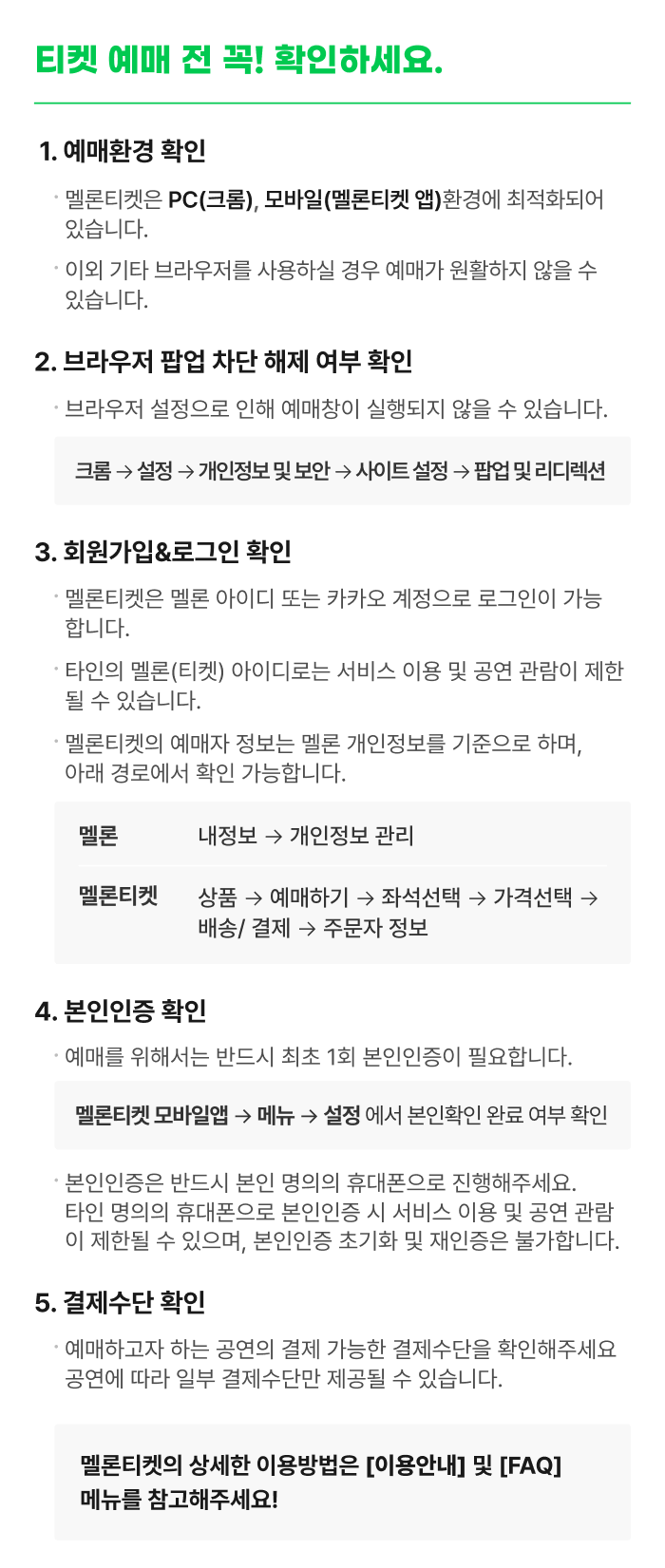 (단. 장애인 석 예매다에 한하여 동반인의 멜론 티켓 아이드를 제시할 경우 동반인석 1매까지 함께 예매가 가능합니다.)