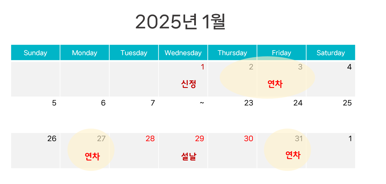 2025년 1월 _ 공휴일 4일