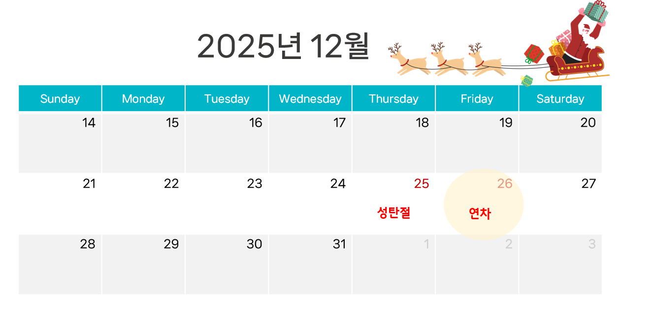 2025년 12월 _ 공휴일 1일