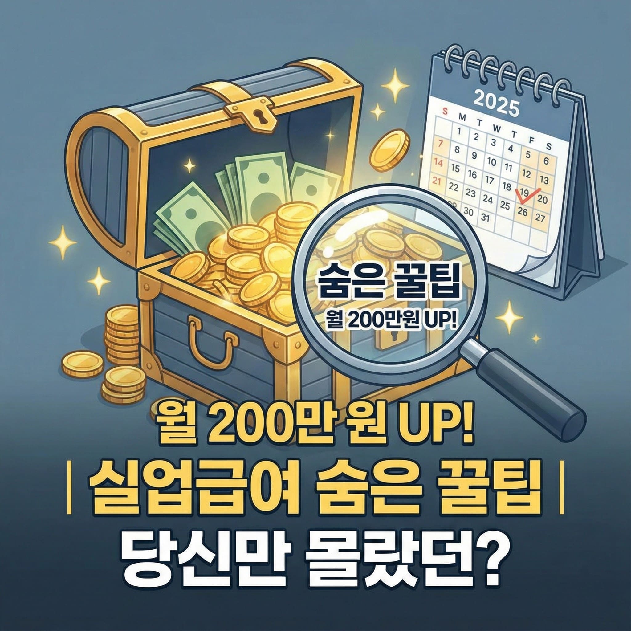 2025년, 실업급여 수급 중이거나 예정이신가요? 단순히 기본 급여만으로는 부족합니다. 사실 실업급여는 우리가 생각하는 것보다 훨씬 더 많은 잠재적 혜택을 품고 있으며, 월 최대 200만원 이상을 더 받을 수 있는 '숨겨진 꿀팁'들이 존재합니다. 오늘은 실업급여 기간을 재정적으로 더 풍요롭고 미래를 위한 투자 기간으로 만들 특별한 방법 3가지를 자세히 알려드립니다. 당신만 몰랐던, 2025년 실업급여의 진짜 알짜배기 꿀팁들을 함께 파헤쳐 볼까요?