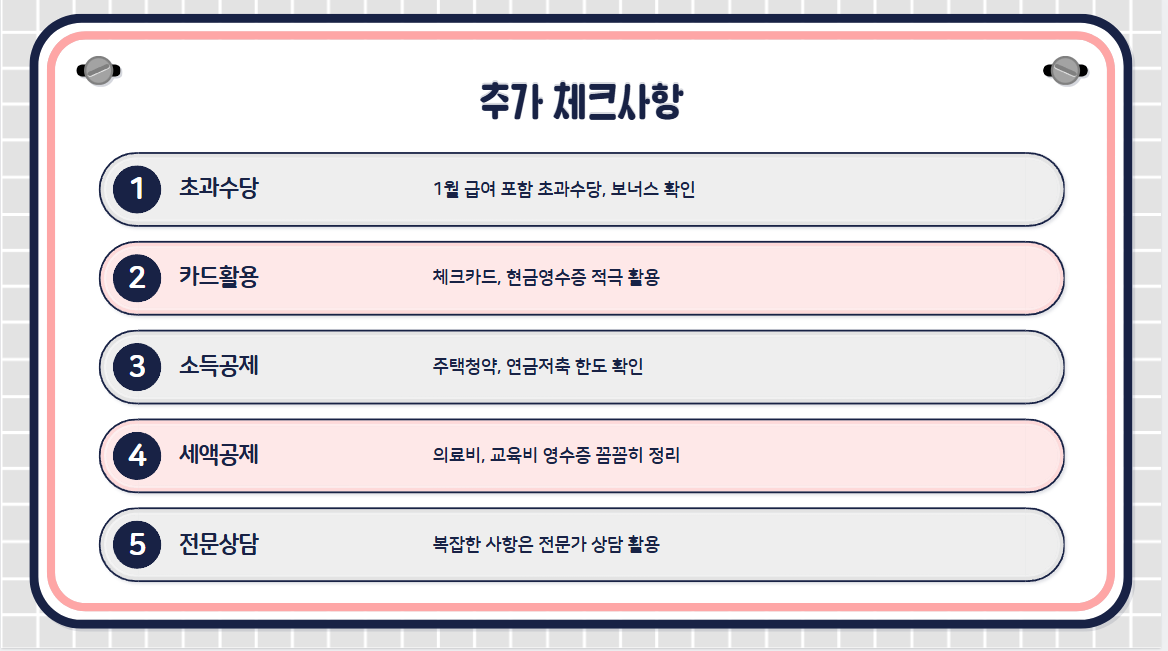 초과수당과 보너스 확인: 1월 급여에 포함된 초과수당이나 보너스는 정확히 챙겨야 합니다.