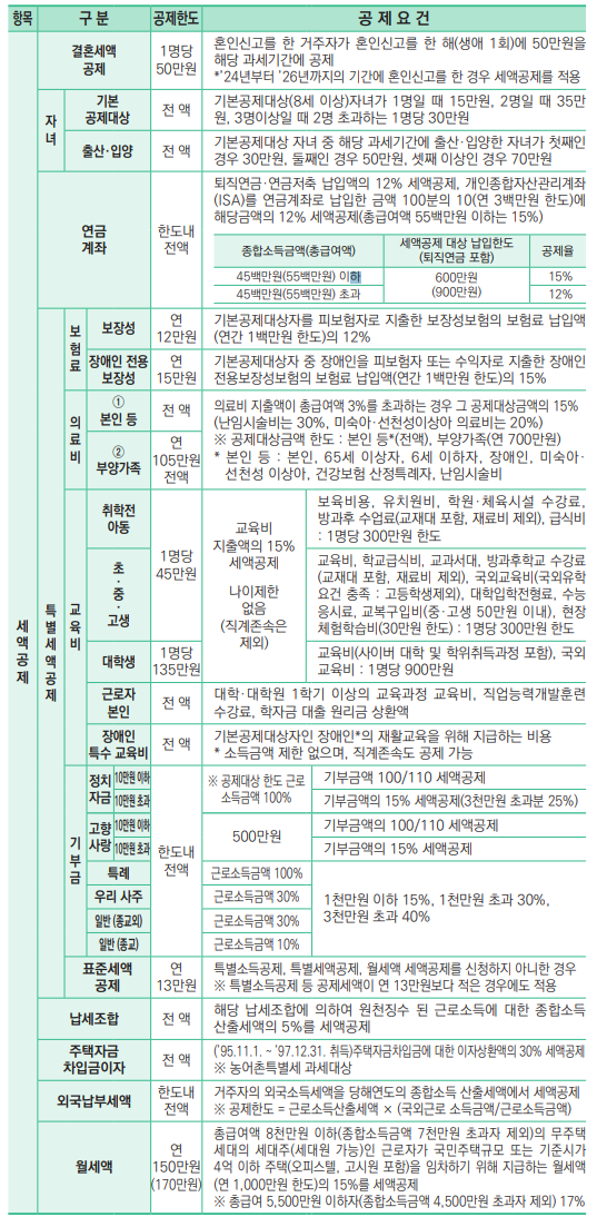 * 보험비/ 의료비/ 교육비는 부양가족의 인적공제 가능 여부와 무관하게 모두 제공