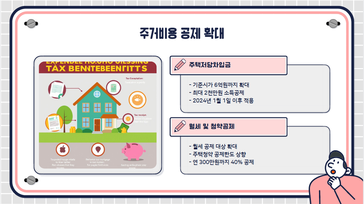 2️⃣ 소득공제 한도 상향, 기준시가 요건 완화로 주거비용 부담 완화