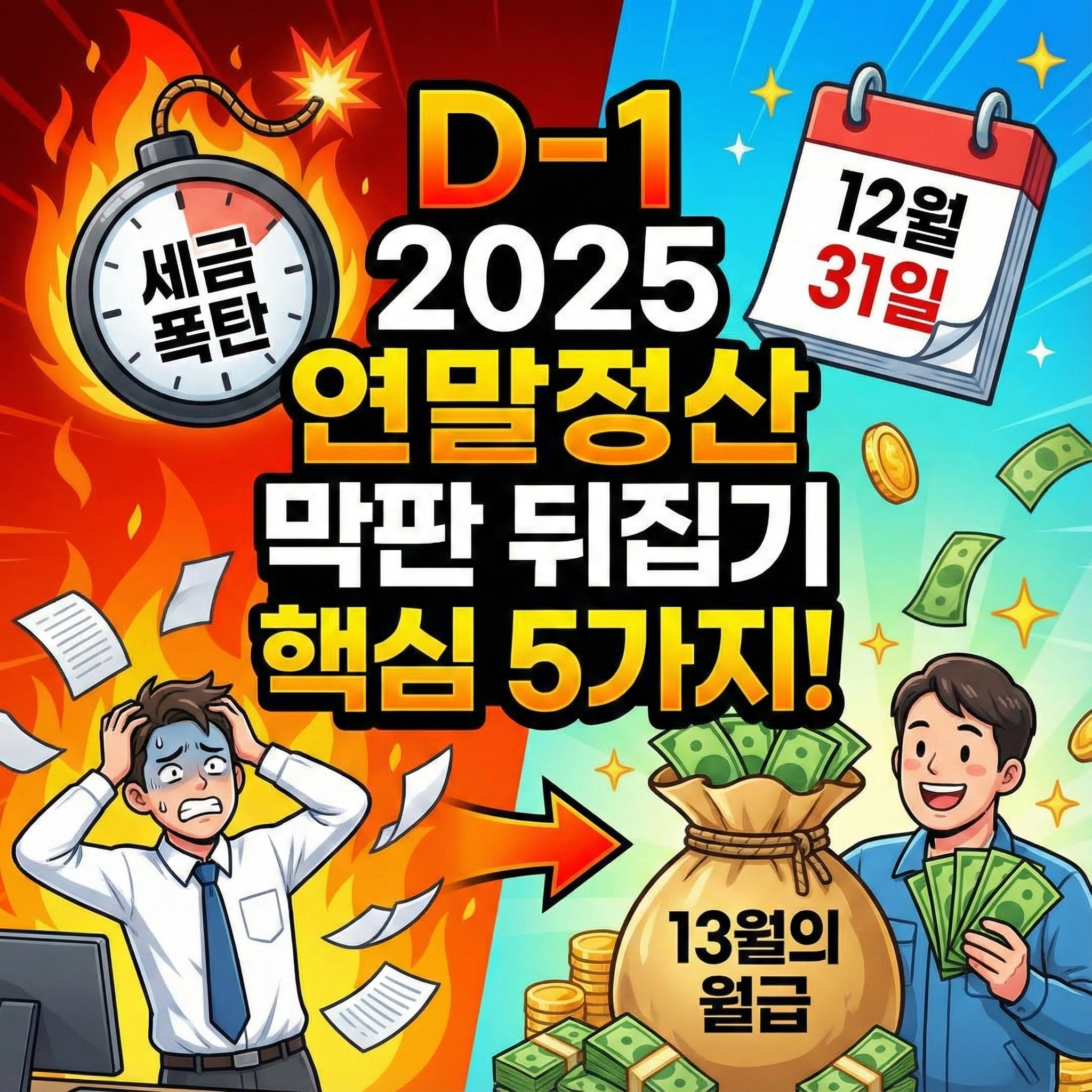 '13월의 월급'이라는 달콤한 별명도 있지만, 반대로 '13월의 세금 폭탄'이 될 수도 있는 연말정산. 그만큼 꼼꼼한 준비가 필요하다는 이야기인데요. 특히 12월 31일은 단순한 한 해의 마지막 날이 아니라, 연말정산 공제 항목 중 상당수가 '당해 연도 지출'을 기준으로 하기 때문에 매우 중요한 의미를 가집니다.